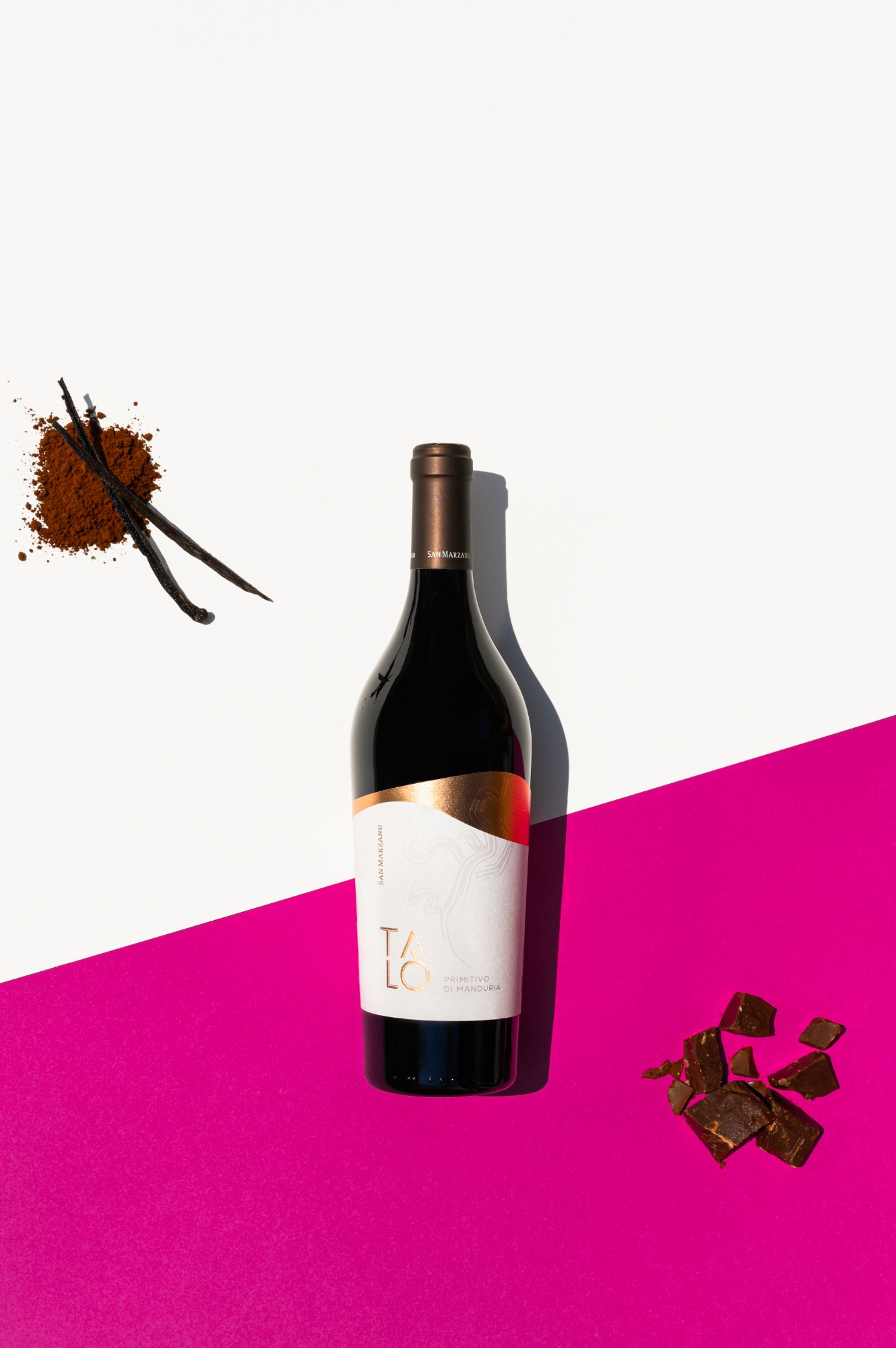 In the glass, the Talò Primitivo di Manduria boasts a ruby-red color enriched with violet hues; a lush bouquet reminiscent of ripe cherries and plums, with pleasant notes of cocoa and vanilla; a wine with remarkable structure, softened by the soothing warmth of the Primitivo grape; the finish offers notes of lingering sweetness. This wine pairs well with hearty appetizers, lamb, game, and red meats with rich sauces, and hard cheeses. 94/100 Luca Maroni.